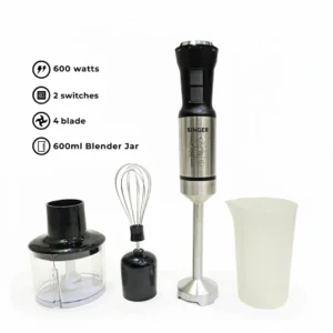 Singer 4-in-1 Hand Blender Set R.292 - 600W Powerful Motor, Chopper, Whisker, 21-Speed