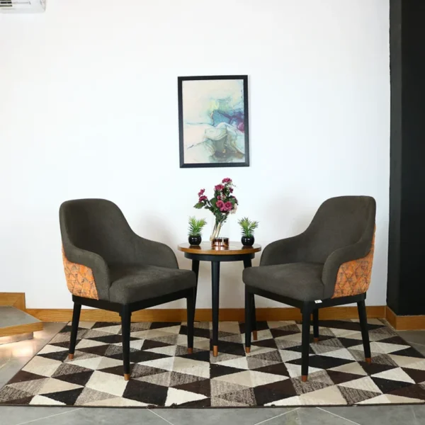 Enhance your space with the Sepia Copper Velvet Chair Set, featuring two comfortable upholstered chairs and a compact coffee table. The chairs offer premium comfort with high-density foam cushions and luxurious velvet upholstery in a rich Copper color. The Black solid wood frame is kiln-dried for superior strength and has reinforced joints for long-lasting use. This elegant Copper Velvet Chair Set is perfect for creating a cozy, functional corner for reading, conversation, or enjoying coffee in your bedroom or lounge.