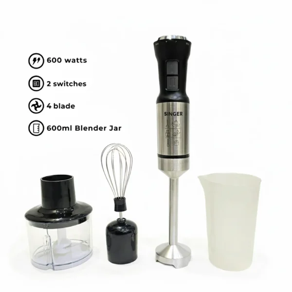 Singer 4-in-1 Hand Blender Set R.292 – 600W Powerful Motor, Chopper, Whisker, 21-Speed