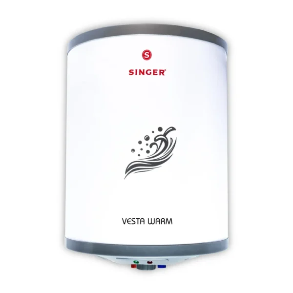 The SINGER Vesta Warm 6 Ltr is a compact, powerful 2000 Watt Storage Water Heater ideal for small bathrooms. Safety and longevity are ensured by its Shock Proof Body, High Quality Glass Line Tank, and Magnesium Anode. This highly efficient Storage Water Heater operates at 8 Bar pressure and comes with a Free Installation Kit.